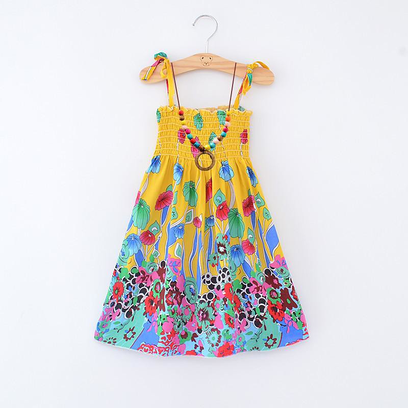Kids Girls' Dress Floral Animal Cartoon Sleeveless Casual Active Daily Cotton Knee-length Floral Dress Summer Dress Summer Spring 4 years 8601 Rainbow Bar 8602 orange 8602 purple
