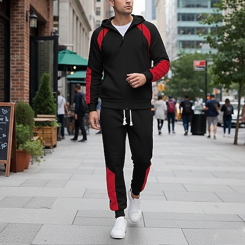 Per uomo Tuta da Ginnastica Set di abiti Set di felpe con cappuccio Felpa con Cappuccio All'aperto Quotidiano Sportivo Coulisse Con zip Tasca Blocco di colori Rosso bordeaux Nero Bianco Abbigliamento