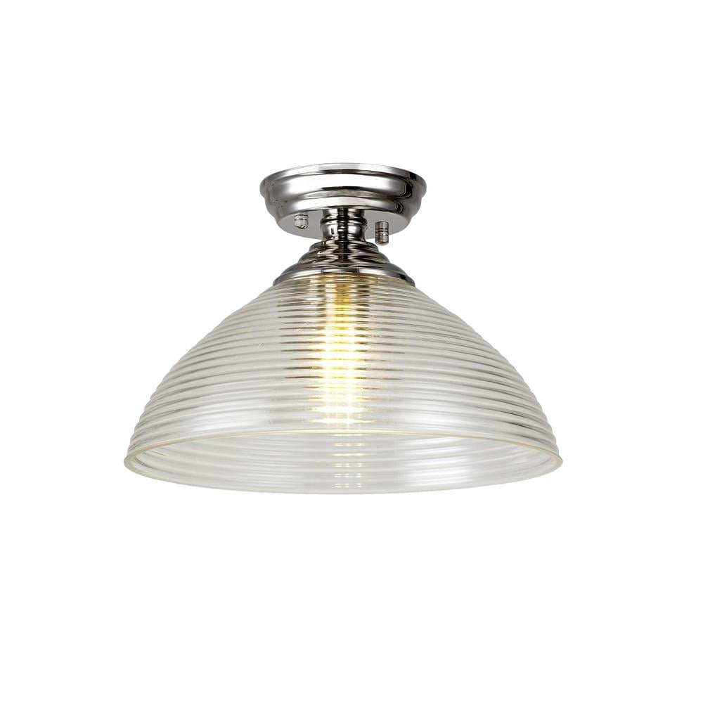 Sirius Flush Ceiling Light 1xE27 With Round 30cm Glass Shade Polished Nickel/Clear Luxuria