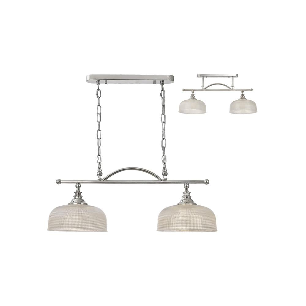 Toussenel Semi Flush/Pendant Bar 2 Light Adjustable E27 Polished Nickel/Prismatic Glass Luxuria