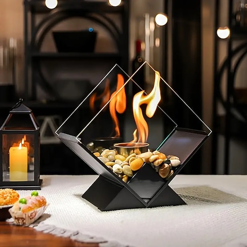 braciere da tavolo a forma di diamante, camino portatile da tavolo a bioetanolo a combustione pulita, camino senza canna fumaria per feste, eventi, patio, interni ed esterni