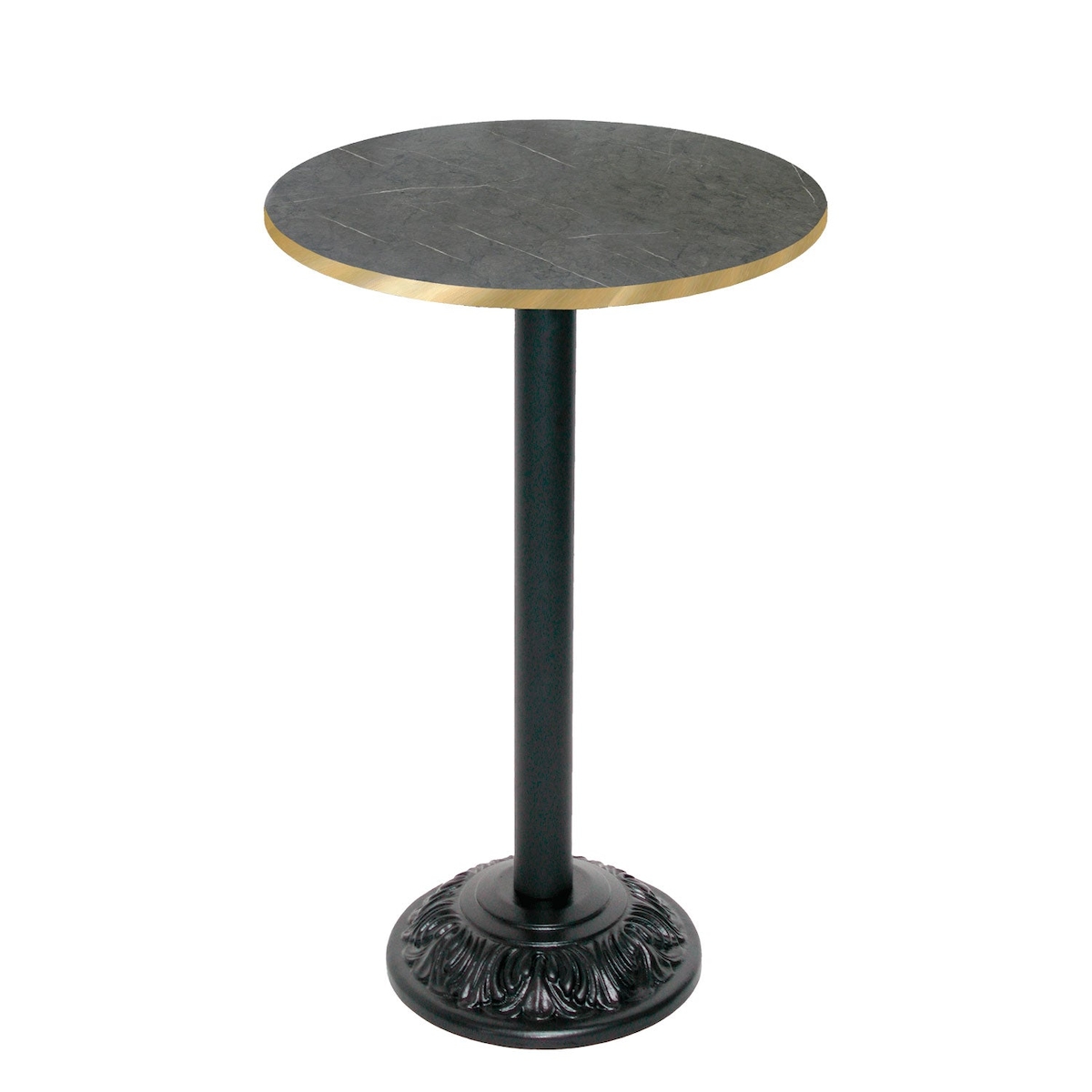 Restootab Stehtisch Bistrot-Stil Ø60cm - Modell Marquina mit messingfarbenen Kanten
