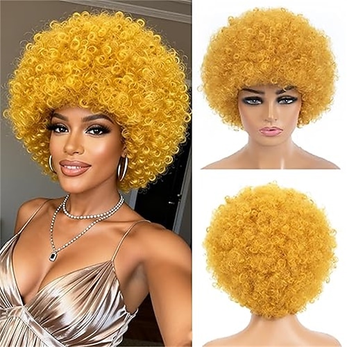 Kurze, lockige Afro-Perücke mit Pony, kleberfrei, für schwarze Frauen und Männer, 70er-Jahre-Disco-Look, voluminös, flauschig, hitzebeständig, natürlich aussehendes Kunsthaar, ideal für Partys,