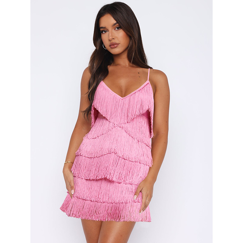 Latin Dance Dress Tassel Women's Performance Daily Wear Sleeveless Elastane