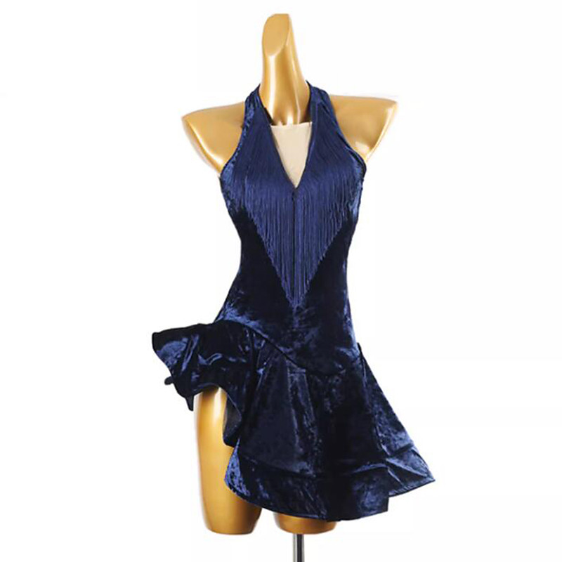 Latin Dance Dress Tassel Pure Color Splicing Women's Performance Training Sleeveless Velvet