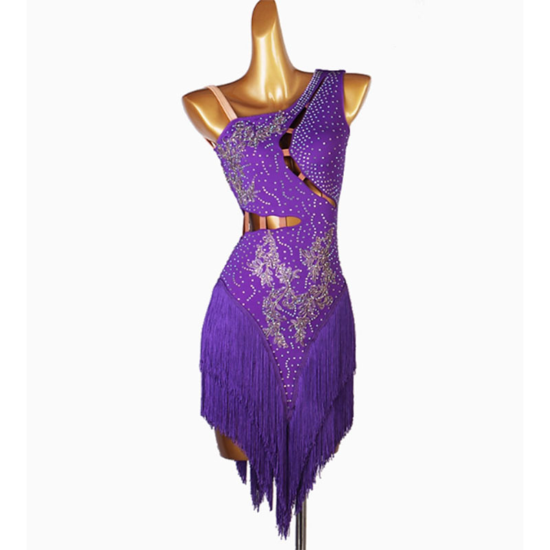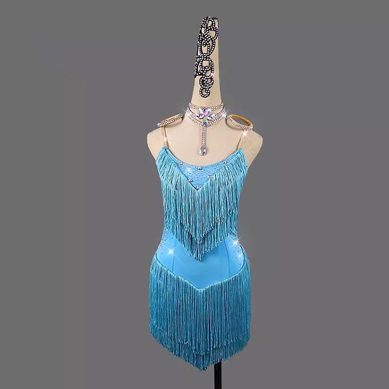 Latin Dance Dress Rhinestone Tassel Splicing Women's Performance Training Sleeveless Chinlon