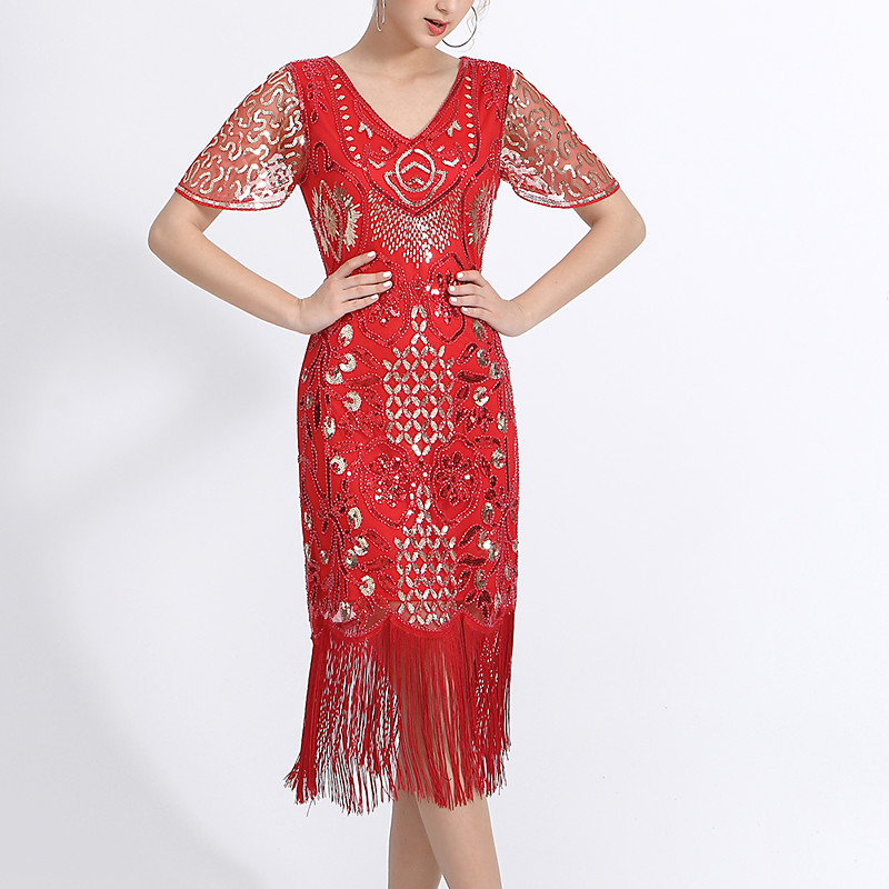 Latin Dance Dress Fringed Tassel Women's Performance Half Sleeve Mesh Milk Fiber