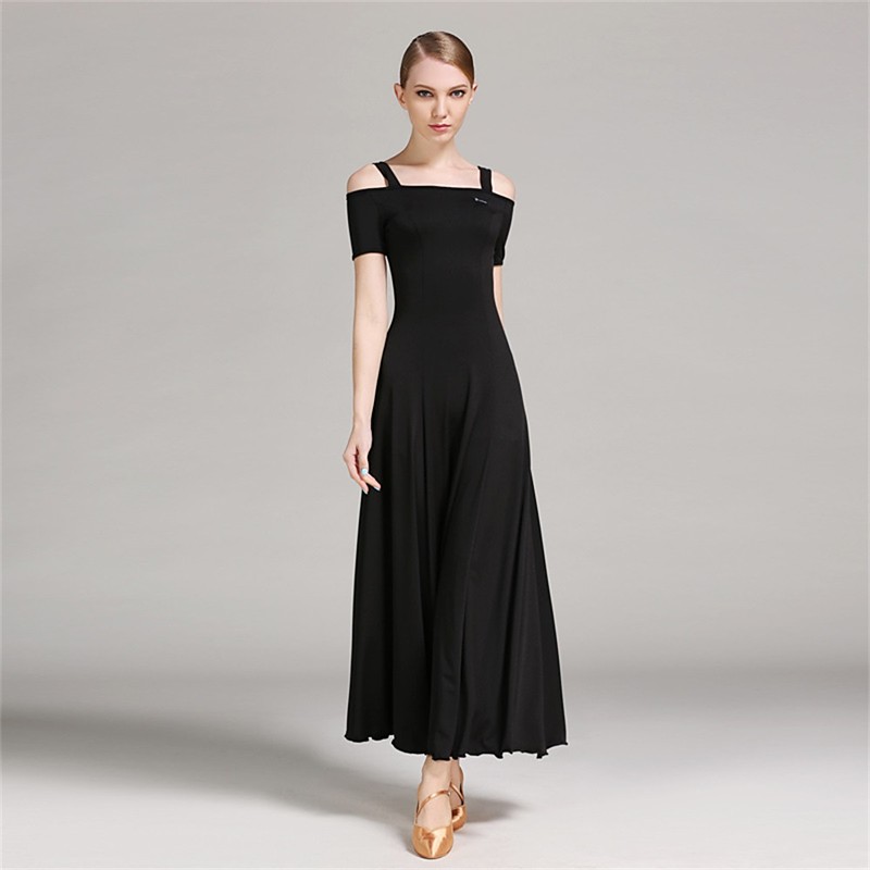 Off-Shoulder Ruffled Ballroom Dance Dress for Women - Elegant A-Line Gown for Competitions, Latin, and Dance Events - Black