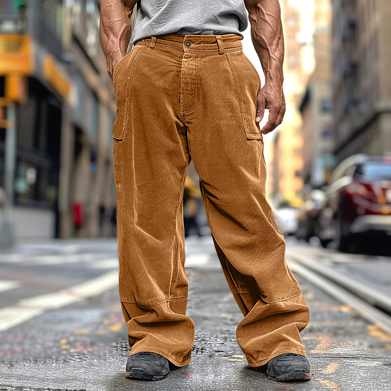 Men's Cargo Pants Corduroy Pants Trousers Baggy Pants Casual Pants Pocket Elastic Waist Straight Leg Plain Comfort Soft Full Length Outdoor Daily Going out Fashion Streetwear Army Green Brown