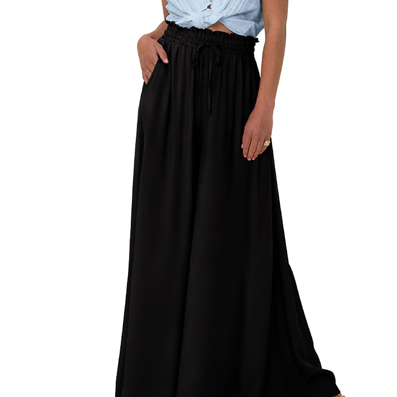 Women's Culottes Wide Leg Slacks Pants Trousers Streetwear Casual Full Length Natural Plain Pocket Elastic Waist Comfy Outdoor Comfortable Vacation Street Apricot Light Sky Blue Black Army Green