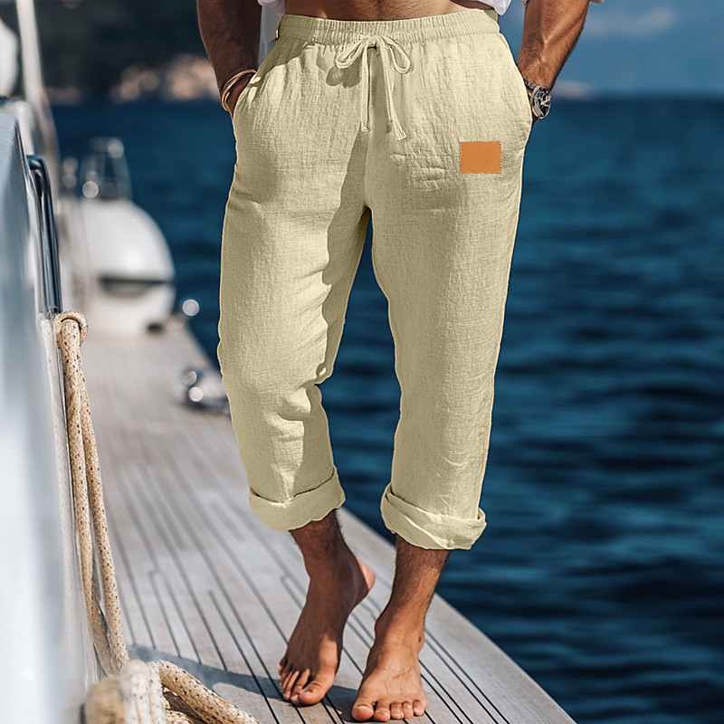 Men's Linen Pants Trousers Summer Pants Baggy Pants Beach Pants Elastic Waist Drawstring Straight Leg Plain Comfort Breathable Full Length Outdoor Holiday Beach Vacation Fashion White Army Green