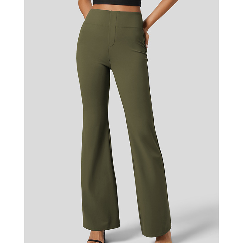 Women's Wide Leg Bell Bottom Slacks Streetwear Casual Full Length Natural Plain Pocket Elastic Waist Comfy Outdoor Vacation Holiday Dark-Gray Black Army Green Dark Blue Fall Regular Fit