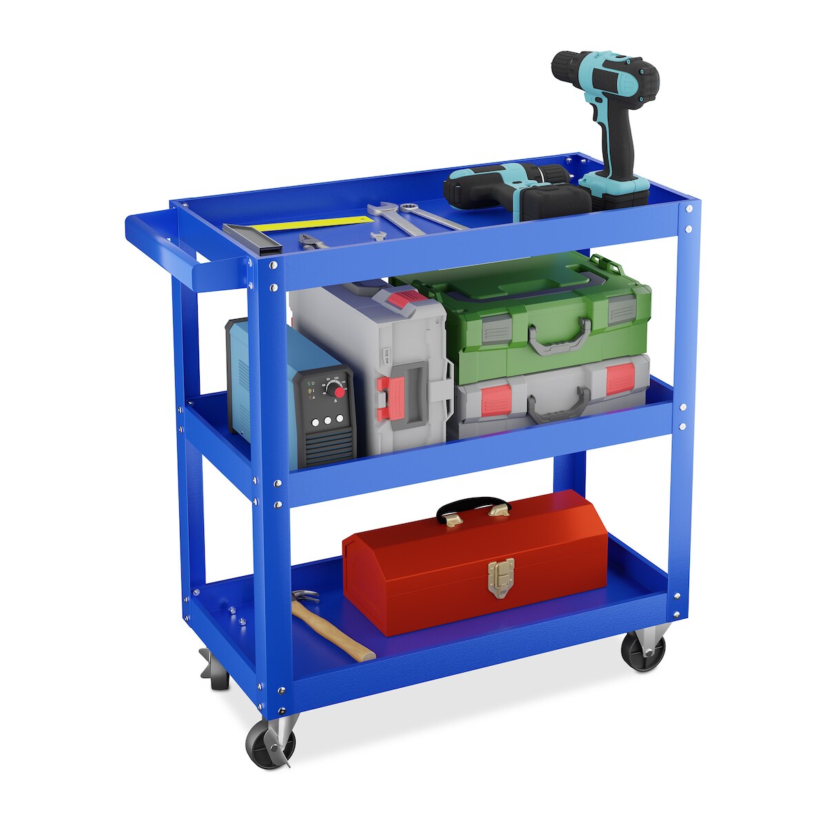Relaxdays Werkstattwagen, Werkzeugwagen mit 3 Ebenen, mobiler Montagewagen, bis 100 kg belastbar, HBT: 76x78x35 cm, blau