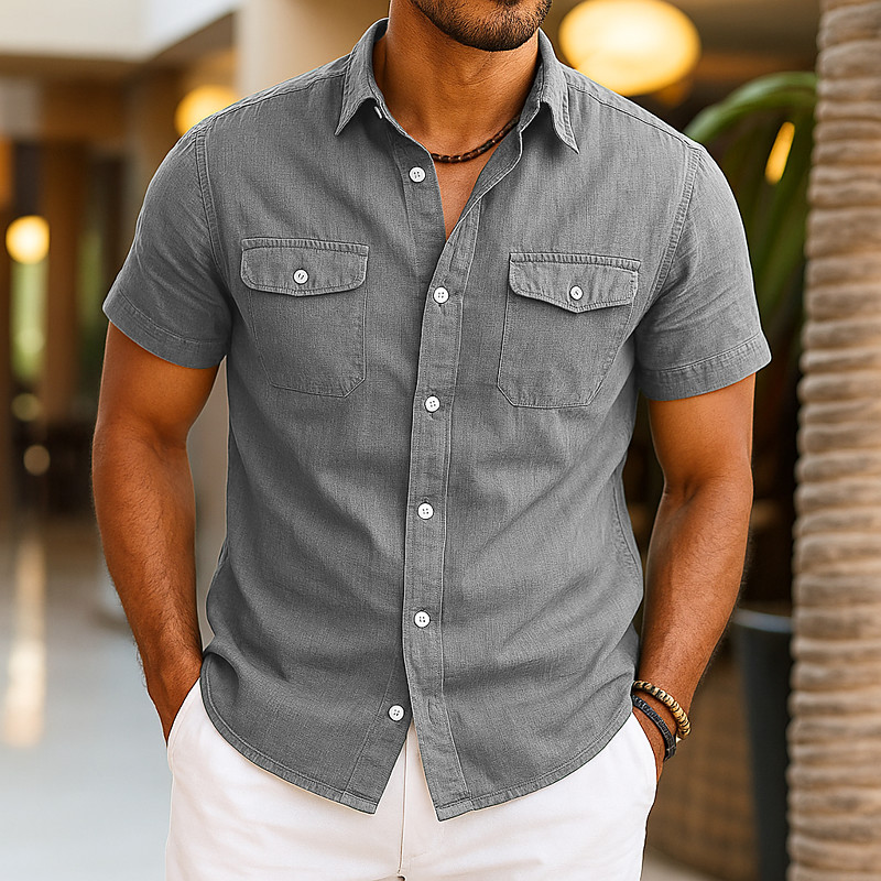 Men's Shirt Linen Shirt Summer Shirt Beach Shirt Solid Color Vacation Curise Green Light Grey Light Blue Short Sleeve Fold-over Collar Summer Spring Summer Clothing Apparel Pocket