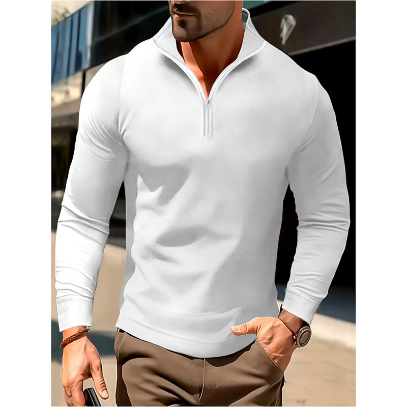 Men's Polo Shirt High Neck Outdoor Casual Lapel Quarter Zip Long Sleeve Fashion Basic Waves Solid / Plain Color Quarter Zip Spring Fall Regular Fit Black White Dark Navy Blue Polo Shirt