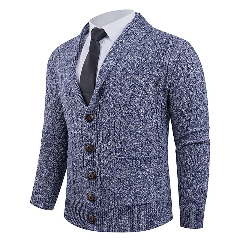 Men's Cardigan Sweater Cropped Sweater Knit Sweater Ribbed Knit Regular Tops Buttons Plain Shawl Lapel Fashion Classic Vacation Daily Wear Clothing Apparel Fall Winter Navy Blue Brown M L XL