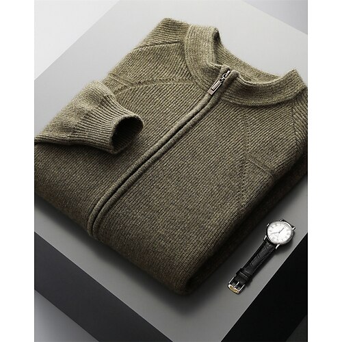 maglione cardigan da uomo in pura lana e cashmere di alta qualità, classico, con cerniera, in maglia, morbido, caldo e traspirante.