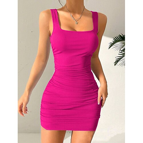 Per donna Mini Abito Abito Bianco Abito da laurea Abito aderente Elegante Moda Moderno All'aperto Vacanza Uscire Vestibilità regolare Semplice Senza Maniche Collo quadrato Nero Bianco Borgogna Blu