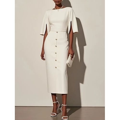 Per donna Abito Midi Abito da lavoro Tubino Elegante Moda Moderno Ufficio Vestibilità regolare Semplice Mezza Manica Girocollo Nero Bianco Primavera Autunno