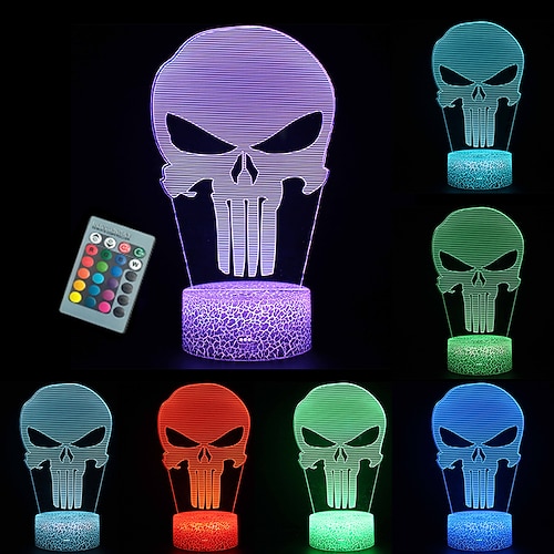 Halloween Punisher Skull 3D Nachtlicht 16 Farbwechsel LED Halloween Geschenk für Kinderzimmer Dekor