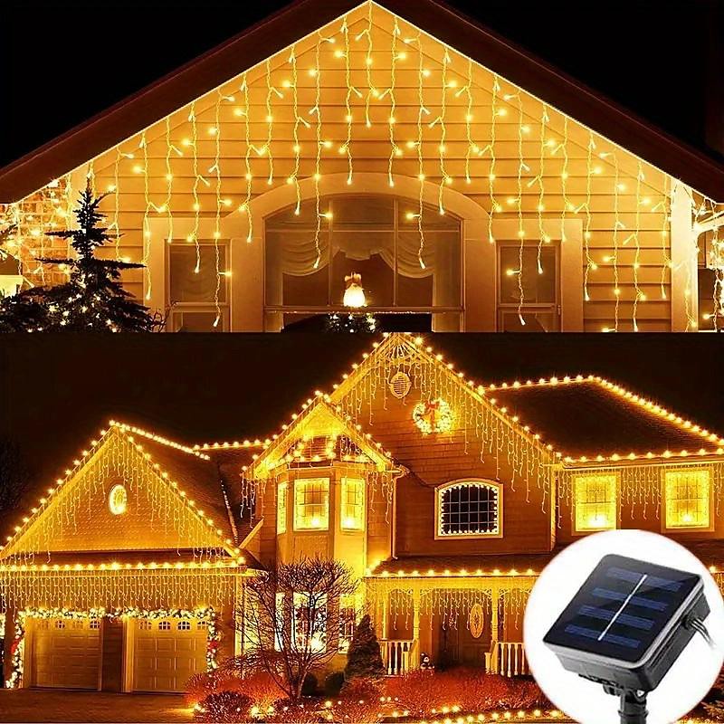 1pc LED Solar Icicle String Light, 4M-96Leds 8 Modes, Waterproof Curtain Icicle Light Fairy String Light, Roof, Commercial Street Decoration