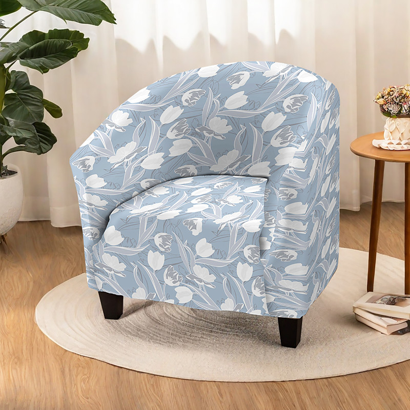 Club Chair Cover Striped Plant and Geometric Printed Polyester Slipcover for Living Room Bedroom and Home Office