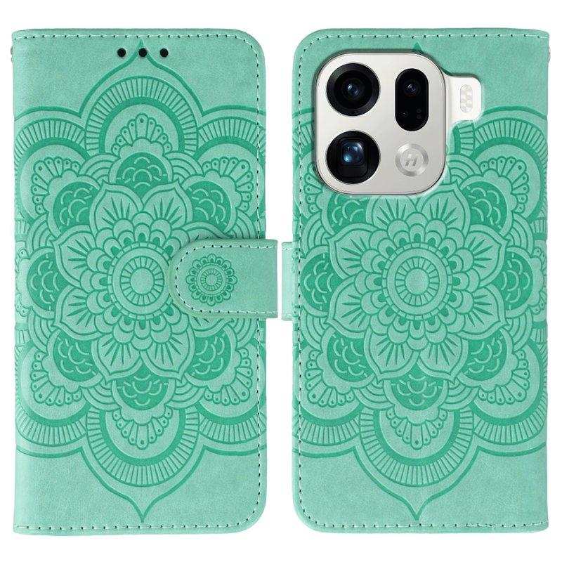 Oppo Find X9 Pro 5G Kortfack Plånboksfodral Konstläder Mandala - Grön
