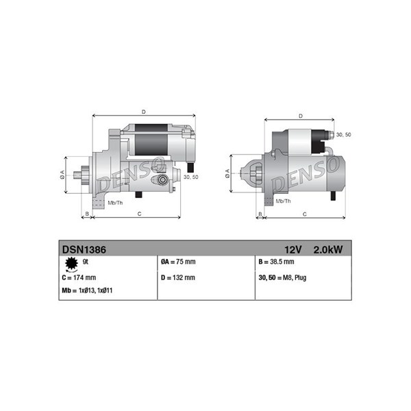 Käynnistin 12V Denso DSN1386 - honda accord viii, accord kombi viii, cr-v iii, cr-v iv - OE 31200-RL0-G51, 31200-RL0-G52, DY4J5