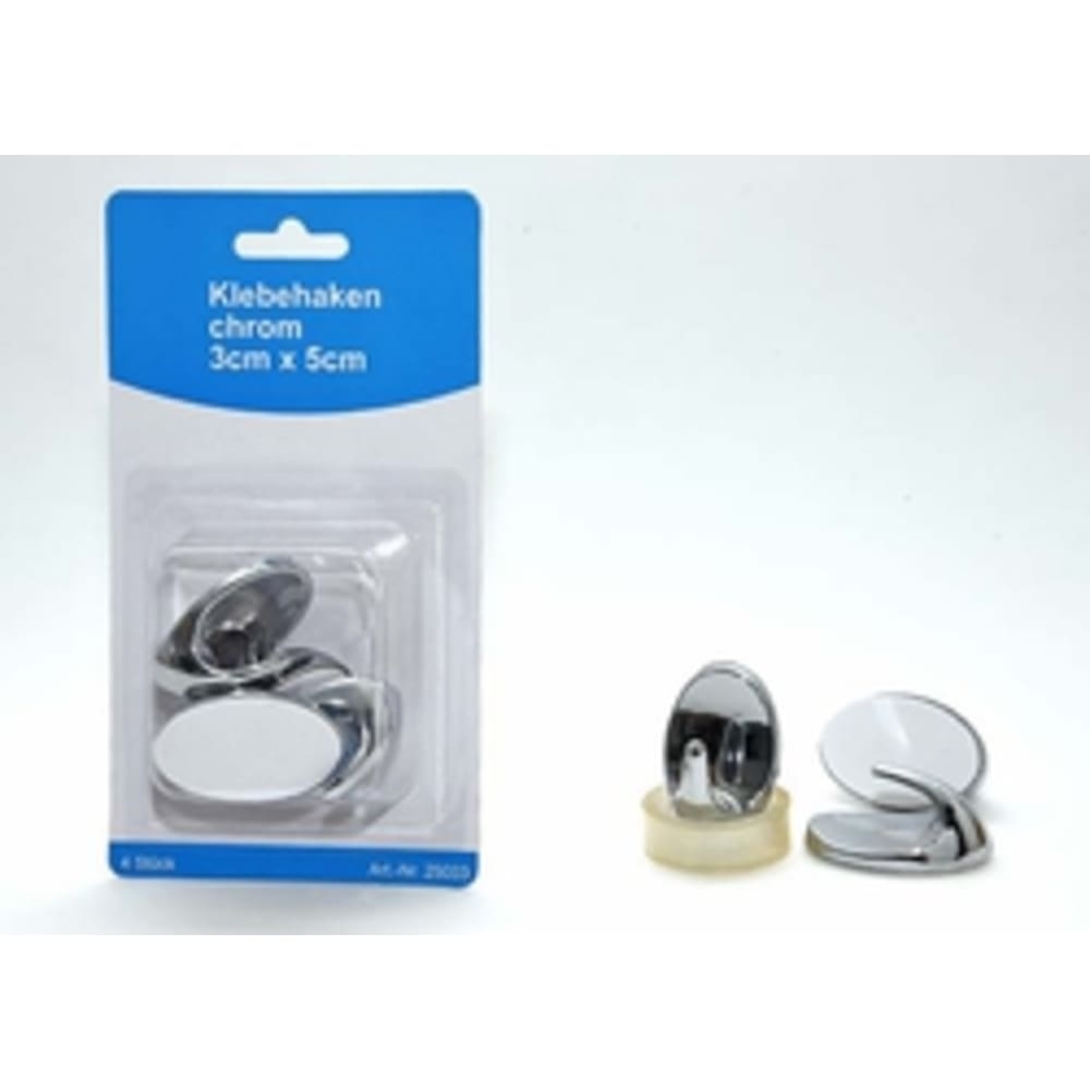 Klebehaken, chrom, ca. 3 x 5cm, 4 Stück