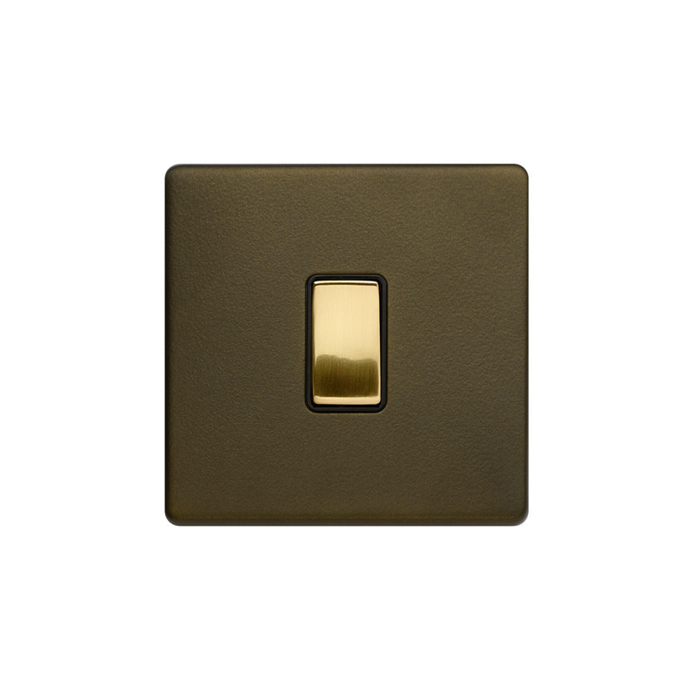 Soho Lighting Bronze & Brushed Brass 10A 1 Gang Intermediate Switch Black Inserts Screwless - Size: 86mm x 86mm