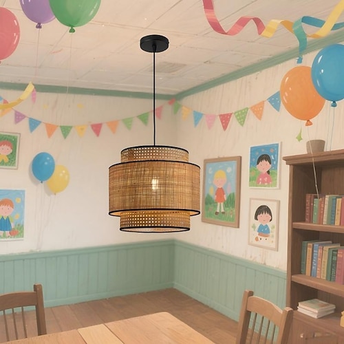 Lampada a sospensione vintage con paralume a cupola in rattan, illuminazione a sospensione semplice, lampadario singolo, lampada a sospensione, decorazione per interni