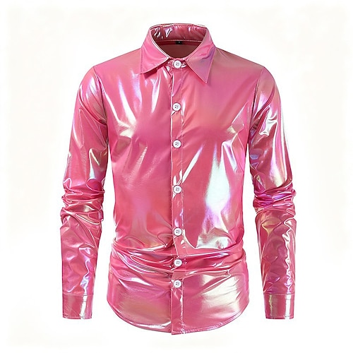 Metallico Anni '80 Lattice Lucido Camicia Disco Costume Per uomo Costume di Carnevale Halloween Carnevale Mascherata Festa / Sera Parata dell'Orgoglio Mese dell'orgoglio Adulti Camicia