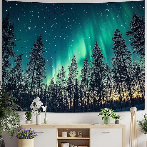 arazzo aurora boreale aurora boreale foresta di pini cielo notturno arazzo da parete natura paesaggio decorazione per camera da letto soggiorno sala yoga spazio per meditazione