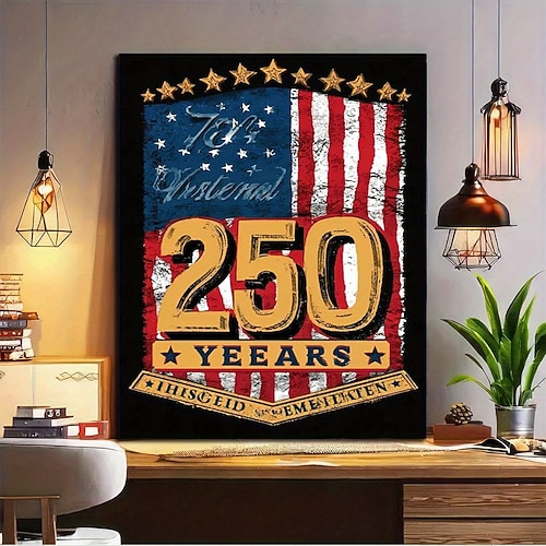 Arte in tela della bandiera americana vintage - Decorazione murale patriottica di 250 anni con stelle e strisce pittura su tela senza cornice per soggiorno camera da letto ufficio bar caffè
