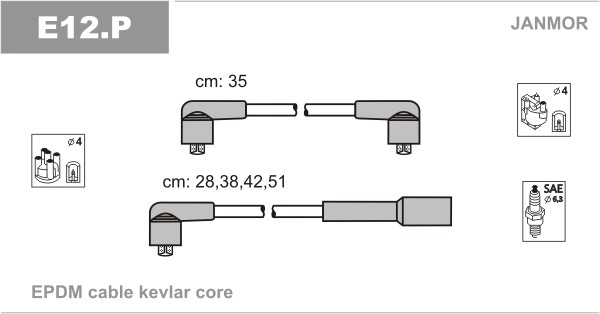 Sytytysjohtosarja Janmor E12.P - skoda felicia i, felicia ii, felicia kombi i, felicia kombi ii, felicia pick-up i - OE 007901726S