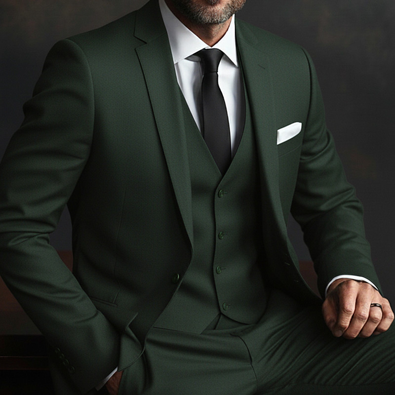 Men's Wedding Linen Suits Peaked Lapel Dark Green Solid Colored Tailored Fit 2 Piece Single Breasted One-button