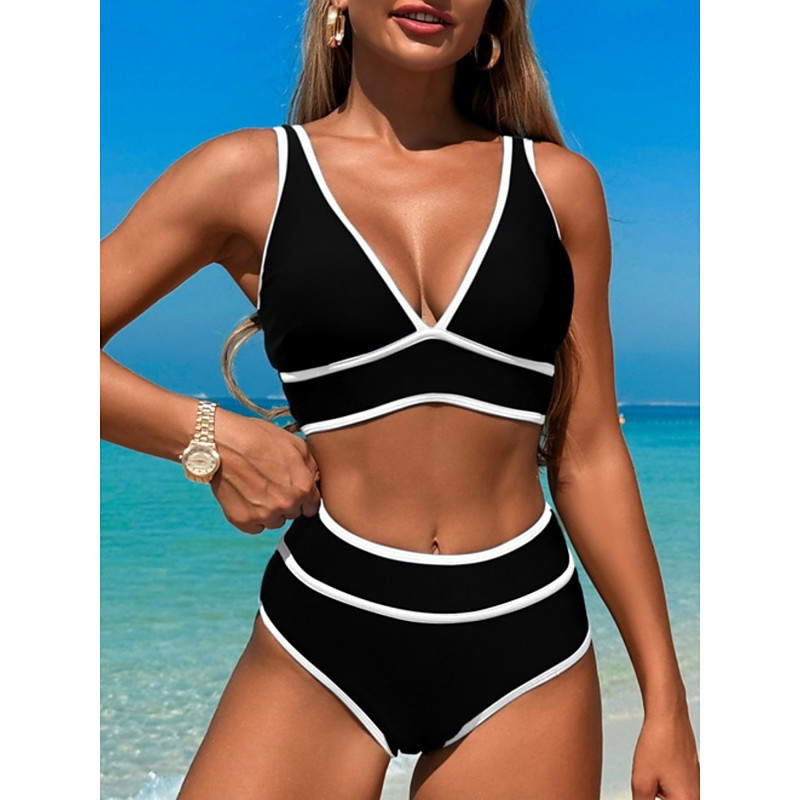 Women's Two Piece Swimsuit High Waisted Ruched Bikini Solid Colored Elastic Sleeveless Swimwear Surfing Beach Vacation Summer