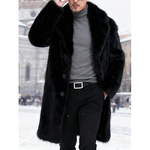 Per uomo Giacca Invernale Cappotto in Pelliccia Sintetica Vacanza Quotidiano Calore Termico Pile Autunno Inverno Semplice Moda Streetwear Bavero Lungo Nero Marrone Giacca