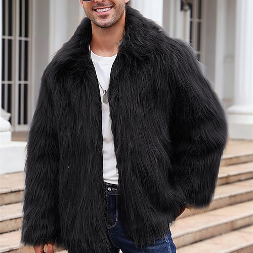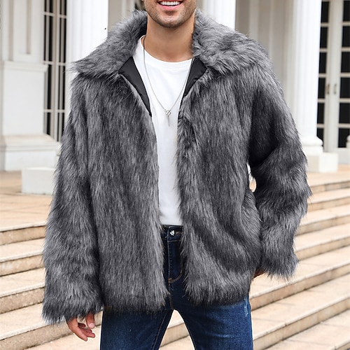 Per uomo Giacca Invernale Cappotto in Pelliccia Sintetica Vacanza Quotidiano Calore Termico Pile Autunno Inverno Semplice Moda Streetwear Bavero Regolare Nero Bianco Giallo Grigio chiaro Grigio scuro