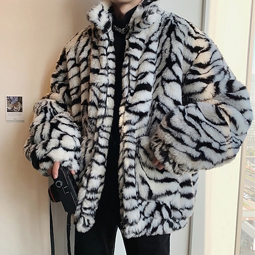 Per uomo Giacca Invernale Cappotto in Pelliccia Sintetica Vacanza Quotidiano Calore Termico Pile Autunno Inverno Zebrato Moda Streetwear Bavero Lungo Albicocca Giacca