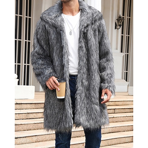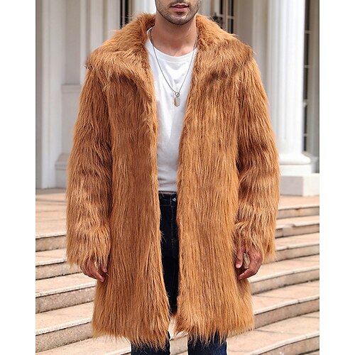 Per uomo Giacca Invernale Cappotto in Pelliccia Sintetica Vacanza Quotidiano Calore Termico Pile Autunno Inverno Semplice Moda Streetwear Bavero Lungo Cammello Grigio scuro Nero Bianco Giallo Giacca