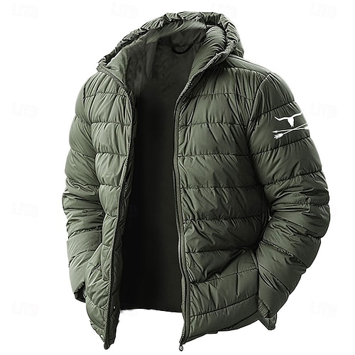 Per uomo Stampa Lettere Cappotto Invernale Giacca Piumino Giacca imbottita Calore Termico Impermeabile alla pioggia Leggero Casual All'aperto Quotidiano Giacca imbottita trapuntata con cappuccio