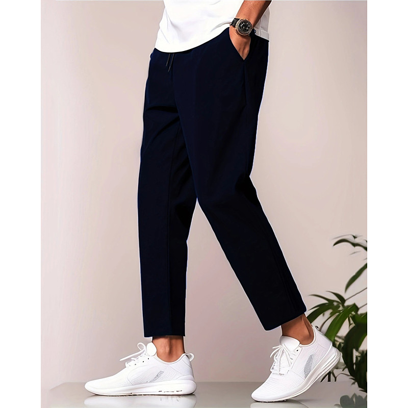 Men's Skinny Trousers Casual Pants Pocket Elastic Waist Drawstring Plain Comfort Ankle-Length Sports Outdoor Daily Fashion Casual Black Navy Blue Micro-elastic