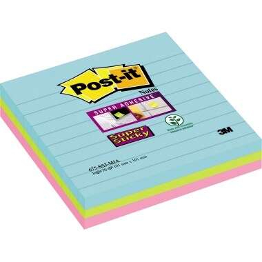 Post-it Meeting Notes Super Sticky, 152 x 101 mm, 4-farbig