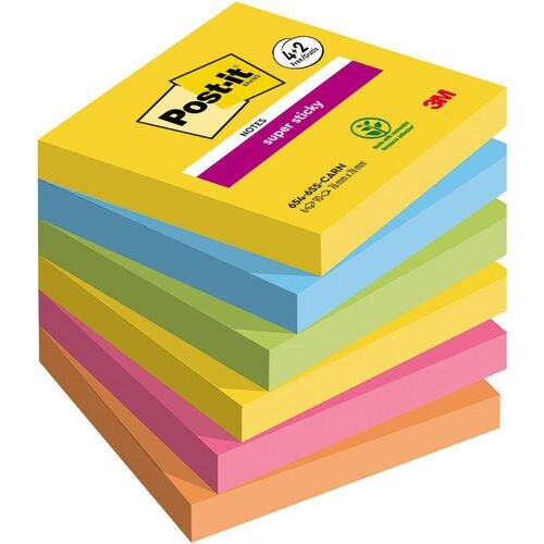 Post-it Carnival Super Sticky Haftnotizen 76 x 76 mm Farbig Sortiert Quadratisch 6 Stück à 90 Blatt