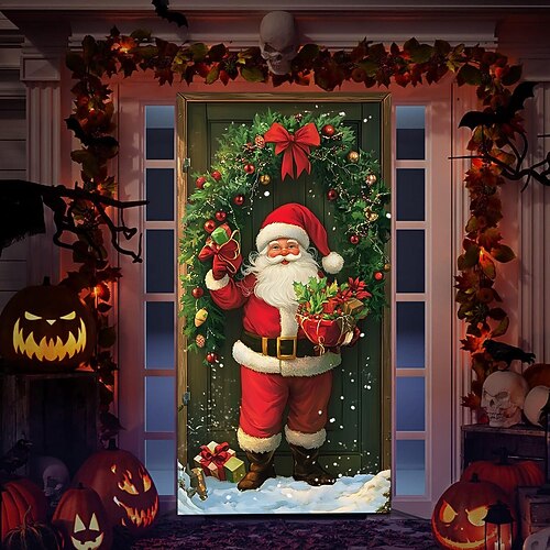 Copertura per porta da garage natalizia – striscione decorativo per esterni festivo, tenda da garage impermeabile con motivo di albero di Natale e pupazzo di neve di Babbo Natale per decorazioni