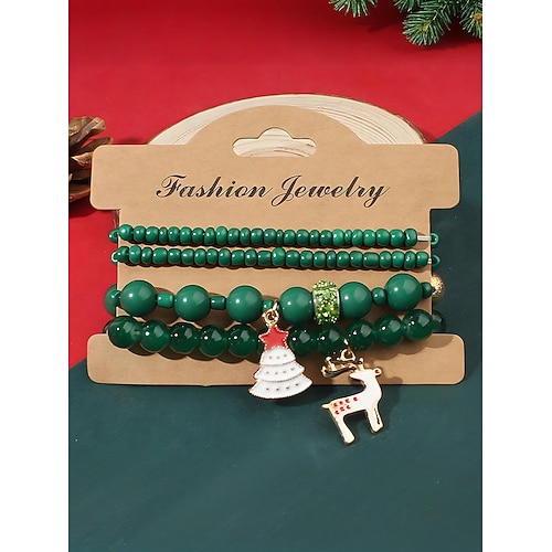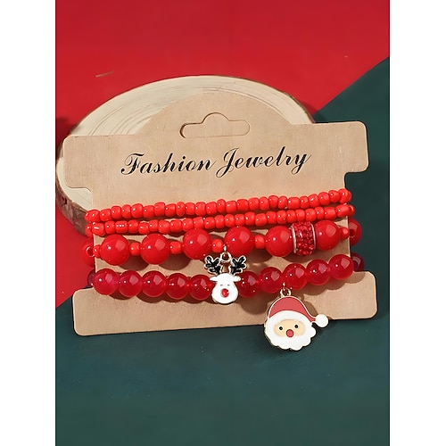 Set di braccialetti natalizi da donna con perline e ciondoli a forma di Babbo Natale, renna e pupazzo di neve, braccialetti elastici con perle rosse e verdi, regalo di gioielli per le feste per lei