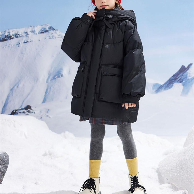 Kids Girls' Down Coat Solid Color Fashion Pocket School Coat Outerwear 4-12 Years Fall Black White Pink