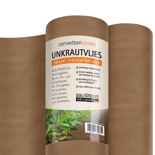 Gartenvlies, Unkrautvlies, Mulchvlies auf Rolle, 1 m x 25 m aus PP-Vlies 130g in braun