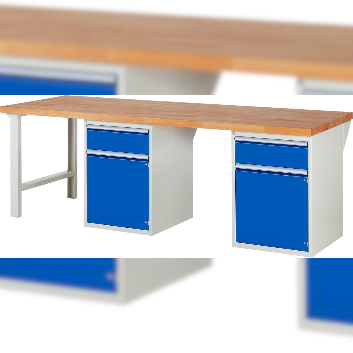 PROREGAL Werkbank Serie 7000 - Modell 7502 | HxBxT 84x250x90cm | 2x Schublade + 2x Flügeltür + 2x Fachboden | Schubladenmaße 2x180mm